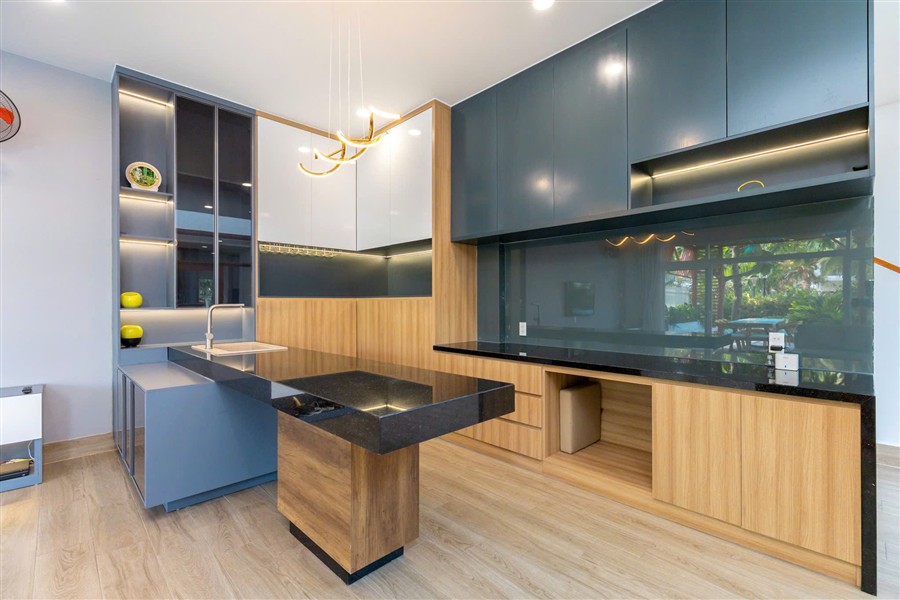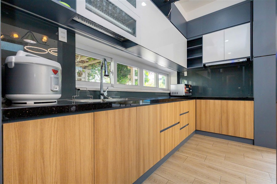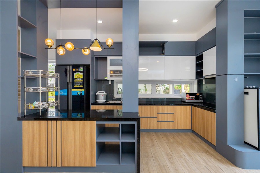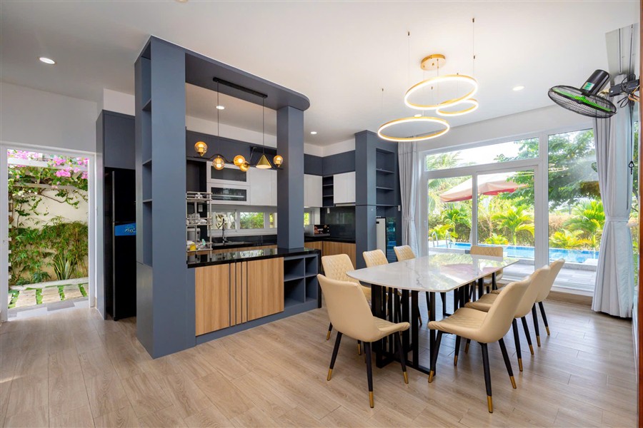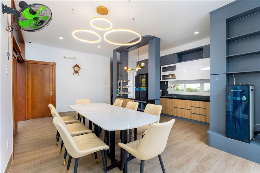 ✅ Khu bếp đầy đủ dụng cụ nấu nướng, bếp từ, tủ lạnh, bàn ăn 10 chỗ