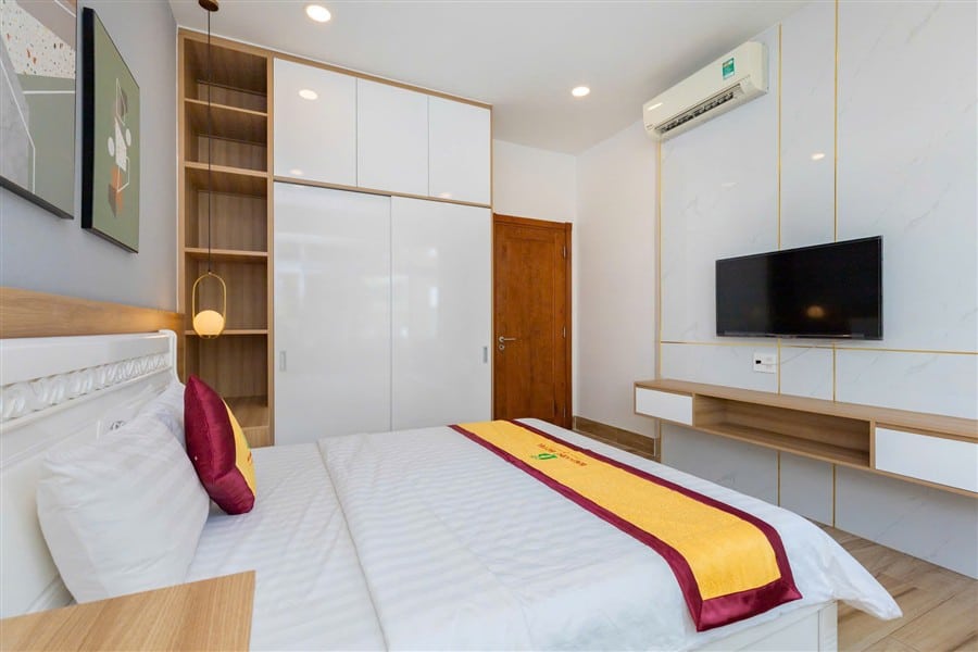 ✅ Nội thất hiện đại: TV, máy lạnh, máy sấy tóc, gương toàn thân