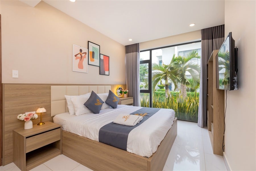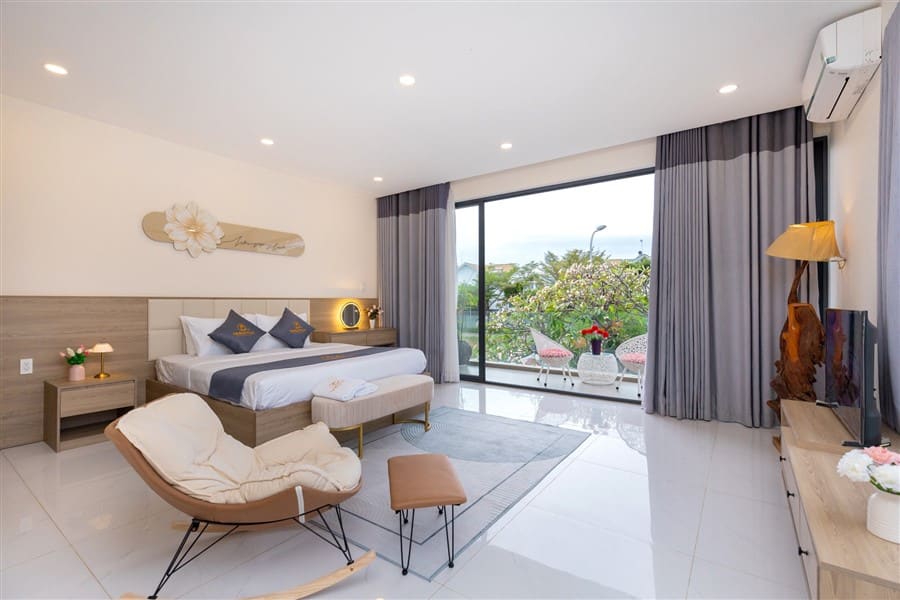 • Phòng ngủ: 4 phòng (đều có WC riêng, ban công và view sân vườn/biển)