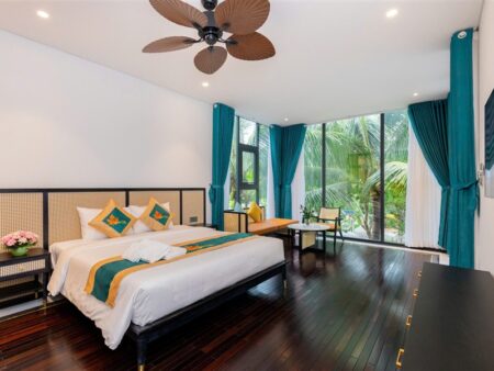 Tiện ích: Hồ bơi ngoài trời 30m² với hệ thống sục massage và khu vực an toàn cho trẻ em Phòng karaoke hiện đại trang bị loa, micro phục vụ giải trí thoải mái Bàn bida miễn phí và ghế massage thư giãn