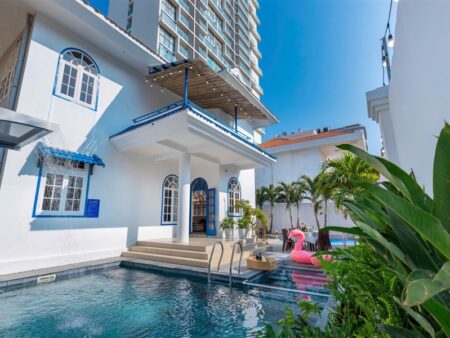 Tiện ích: Hồ bơi ngoài trời 30m², có khu vực dành riêng cho trẻ em, nước sạch và thoáng mát Thuyền SUP miễn phí, giúp du khách có trải nghiệm vui chơi trên hồ bơi hoặc bãi biển gần đó Sân BBQ rộng rãi, trang bị đầy đủ bàn ghế và dụng cụ nướng, lý tưởng cho tiệc ngoài trời